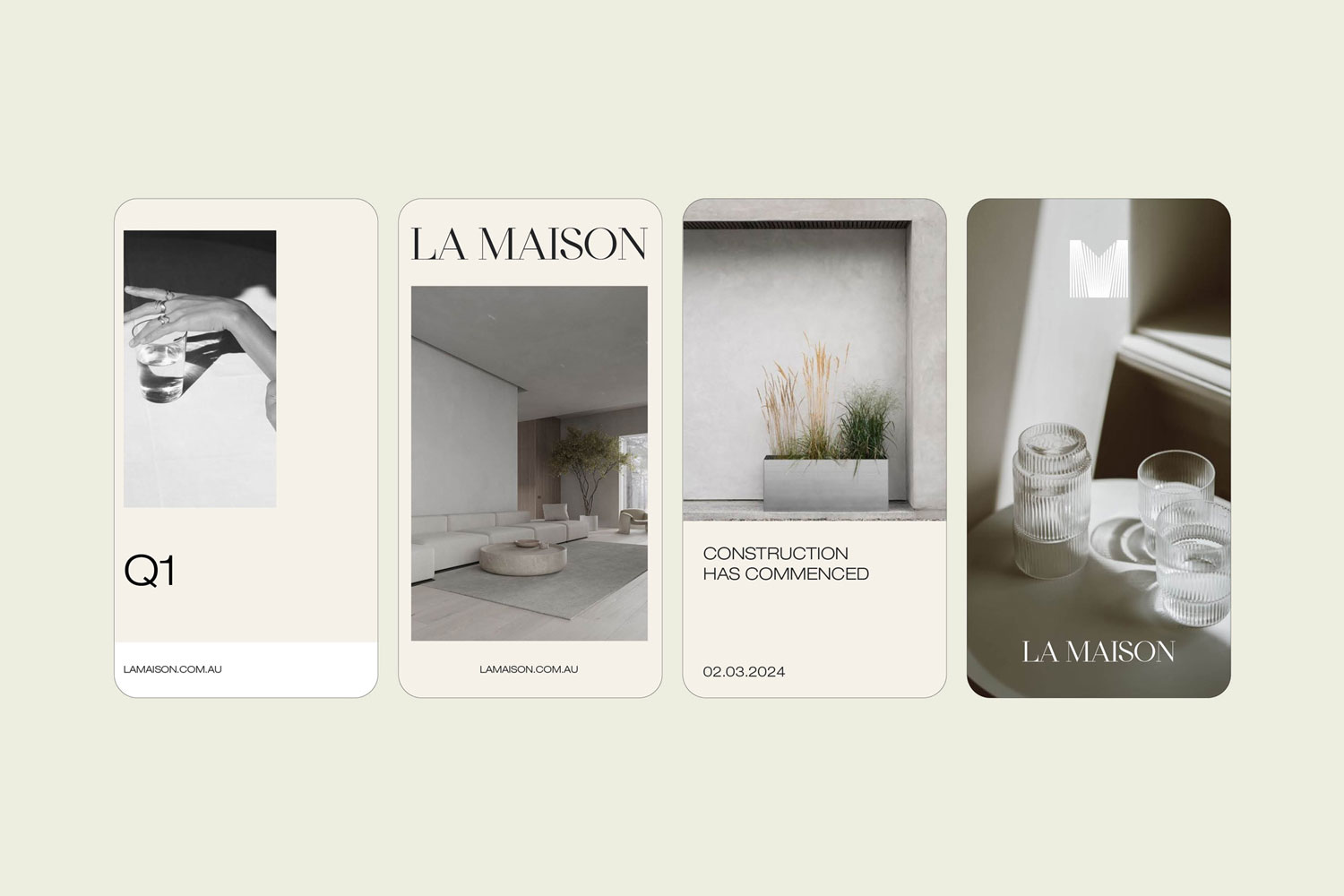 The branding for La Maison focuses on keeping the identity closely connected to the building itself. The linear logo design reflects the patterned façade, creating a clean and cohesive look. This simple, elegant style also represents La Maison’s aim to offer modern, family-friendly homes. By aligning with both the architecture and the lifestyle of its buyers, the brand feels consistent, memorable, and welcoming.